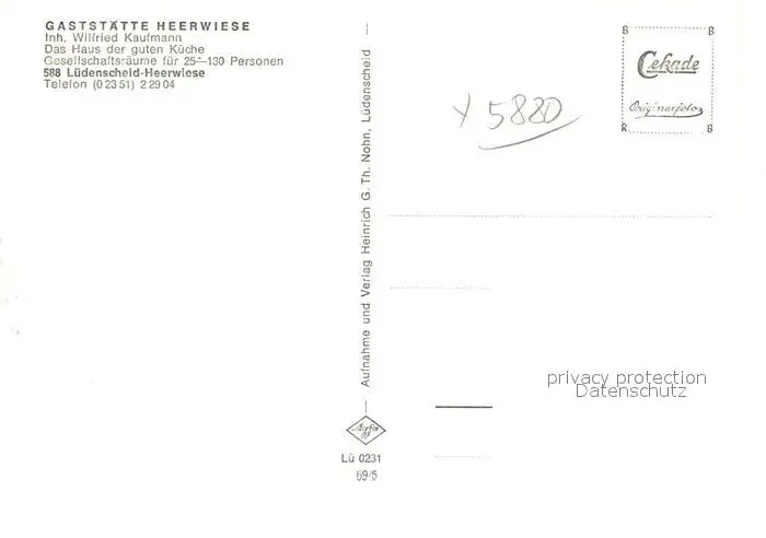 Heerwiese_Luedenscheid Gaststaette Heerwiese postalisch nicht gelaufen 1969 Erhaltung siehe scans [FriedD77] Frierer