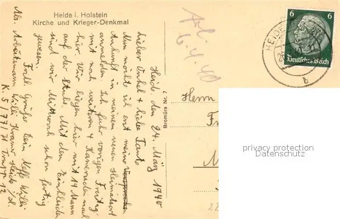Heide_Holstein Kirche Krieger Denkmal Heide_Holstein postalisch gelaufen 1940 Erhaltung siehe scans [KathaD81] Kathoren