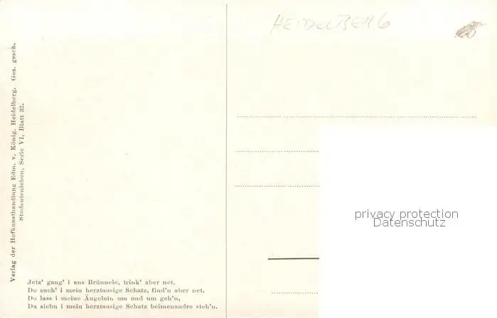 Heidelberg_Neckar Am Bruennele Gemaelde Liedtext Heidelberg Neckar postalisch nicht gelaufen 1921-1965 Erhaltung siehe scans [WerneD78] WernPID7