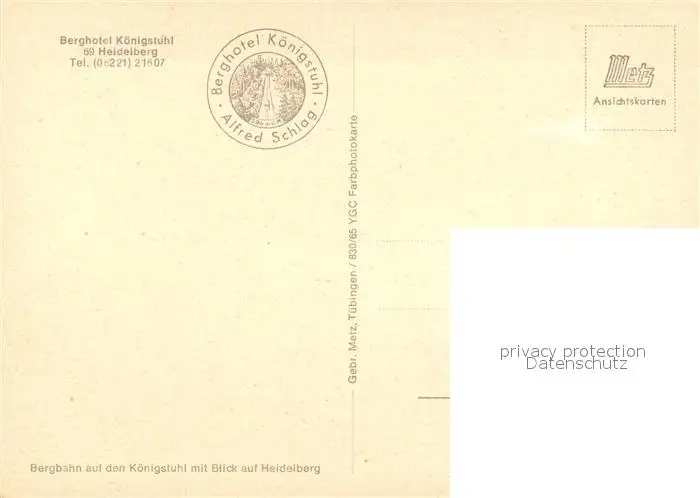 Heidelberg_Neckar Bergbahn auf den Koenigstuhl mit Blick auf die Stadt Heidelberg Neckar postalisch nicht gelaufen nach 1965 Erhaltung siehe scans [FriedD77] Frierer