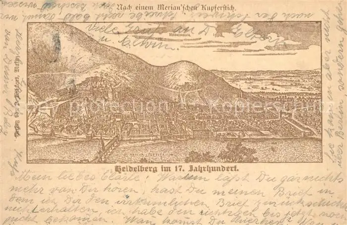 Heidelberg_Neckar Mittelalterliches Staedtebild Kupferstich Heidelberg Neckar postalisch gelaufen 1907 Erhaltung siehe scans [WerneD78] WernPID7