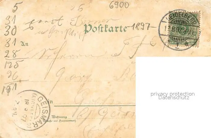 Heidelberg_Neckar Schloss Heidelberg Neckar postalisch gelaufen 1897 Erhaltung siehe scans [LiesaD40] LiesID40