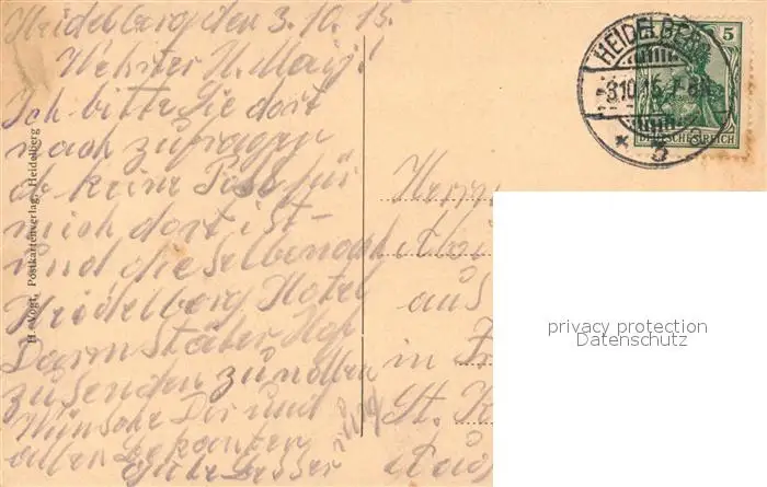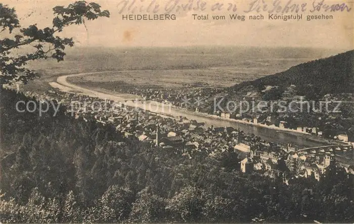 Heidelberg_Neckar Total vom Weg nach Koenigstuhl gesehen Neckartal Heidelberg Neckar postalisch gelaufen 1915 Erhaltung siehe scans [FriedD77] Frierer