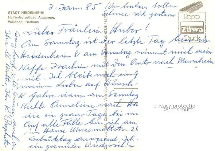 Heidenheim_Brenz Hallenfreizeitbad Aquarena Waldbad Rathaus Heidenheim Brenz postalisch nicht gelaufen 1985 Erhaltung siehe scans [KathaD81] Kathoren