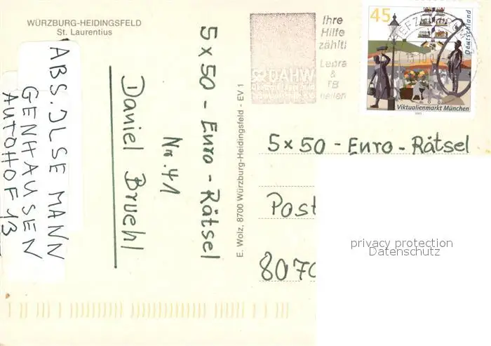 Heidingsfeld Kategorie Alte Ansichtskarten Postkarten bx52864 Heidingsfeld St Laurentius Kirche Altstadt Fliegeraufnahme Heidingsfeld postalisch gelaufen 2004 Erhaltung siehe scans [FriedD77]