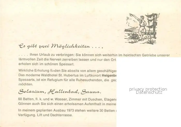 Heigenbruecken Waldhotel St. Hubertus Hallenbad Fliegeraufnahme Heigenbruecken postalisch nicht gelaufen nach 1965 Werbekarte (keine Postkarte) Erhaltung siehe scans [FriedD77] Werbekarte (keine Postkarte) Frierer