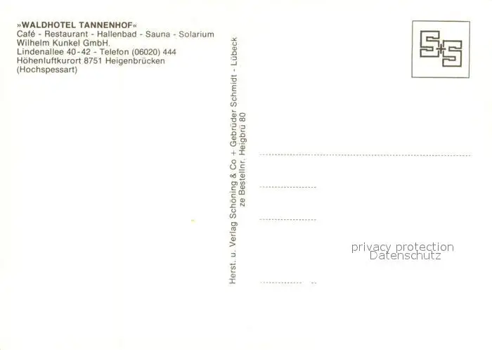 Heigenbruecken Waldhotel Tannenhof Cafe Restaurant Hallenbad Heigenbruecken postalisch nicht gelaufen nach 1965 Erhaltung siehe scans [WerneD78] WernPID7