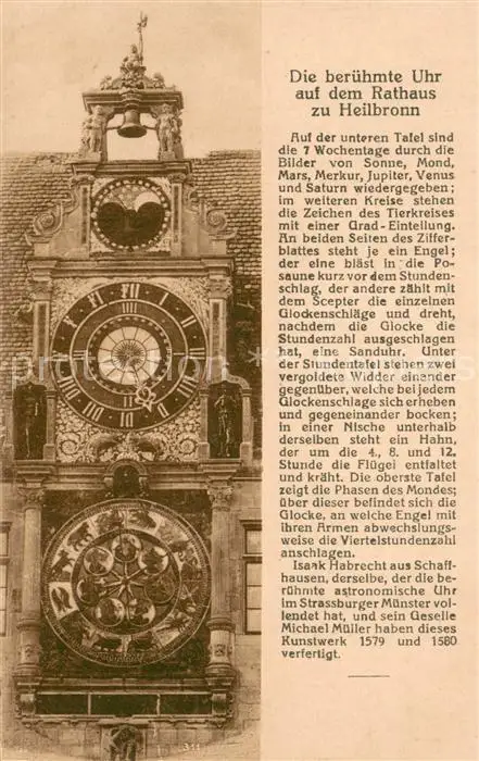 Heilbronn_Neckar Die beruehmte Uhr auf dem Rathaus zu Heilbronn Heilbronn Neckar postalisch nicht gelaufen bis 1920 Erhaltung siehe scans [WerneD78] WernPID7