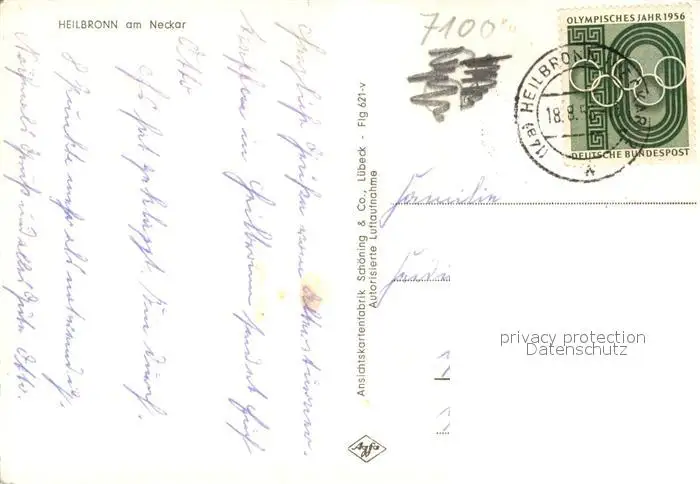 Heilbronn Neckar Kategorie Alte Ansichtskarten Postkarten bx60859 Heilbronn_Neckar Fliegeraufnahme Heilbronn Neckar 1956 Erhaltung siehe scans [KathaD81]