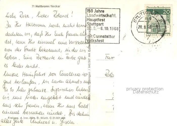 Heilbronn_Neckar Fliegeraufnahme Heilbronn Neckar postalisch gelaufen 1968 Erhaltung siehe scans [WerneD78] WernPID7