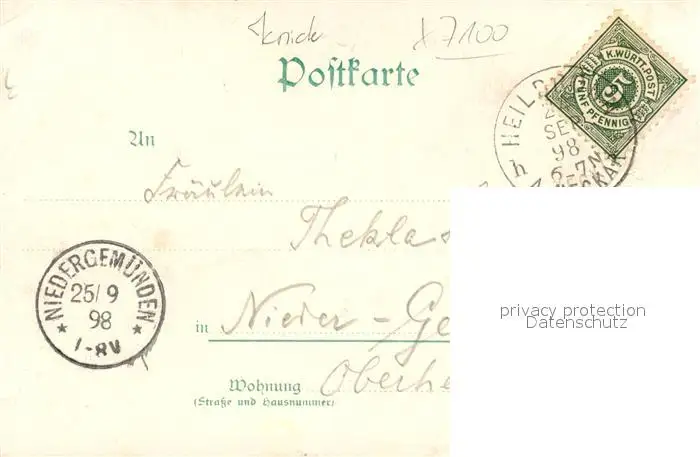 Heilbronn Neckar Kategorie Alte Ansichtskarten Postkarten bx56216 Heilbronn_Neckar Kaiser Strassendurchbruch Harmonie Heilbronn Neckar postalisch gelaufen 1898 Erhaltung siehe scans [NatalD47]