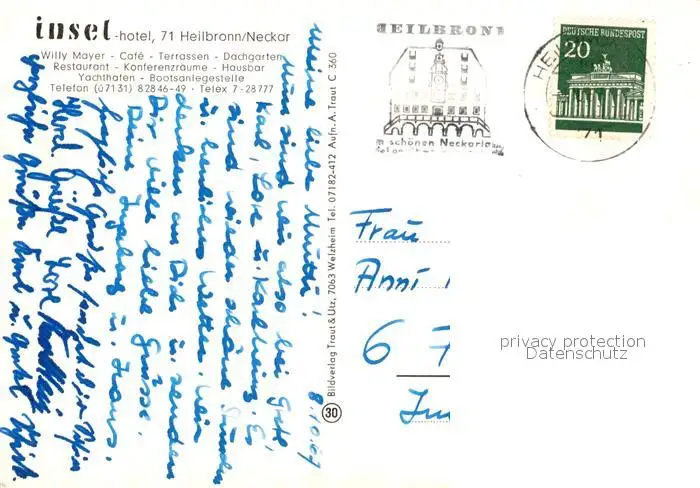 Heilbronn_Neckar Kilianskirche Rathaus Goetzenturm Neckarhafen Chronik Wappen Heilbronn Neckar postalisch gelaufen 1967 Erhaltung siehe scans [FriedD77] Frierer