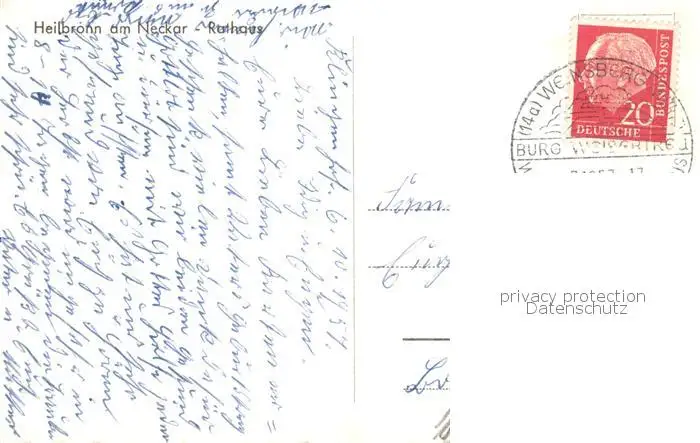 Heilbronn_Neckar Rathaus Heilbronn Neckar postalisch gelaufen 1957 Erhaltung siehe scans [WerneD78] WernPID7