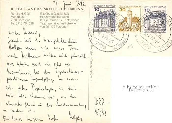 Heilbronn_Neckar Restaurant Ratskeller Gastraeume Heilbronn Neckar postalisch gelaufen 1982 Erhaltung siehe scans [WerneD78] WernPID7