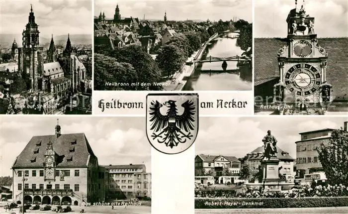 AK / Ansichtskarte Heilbronn_Neckar St Kilian Stadtblick Rathaus Uhr Altes Rathaus Robert Mayer Denkmal Heilbronn Neckar