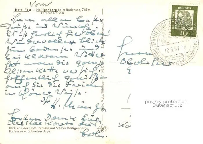 Heiligenberg_Baden Hotel Post Terrasse Heiligenberg_Baden postalisch gelaufen 1961 Erhaltung siehe scans [WerneD78] WernPID7