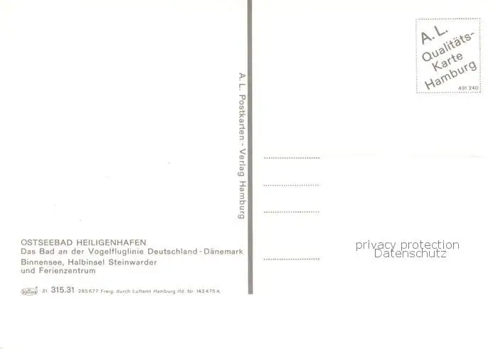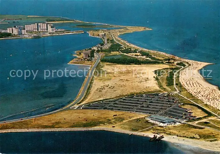Heiligenhafen_Ostseebad Binnensee Halbinsel Steinwarder und Ferienzentrum Fliegeraufnahme Heiligenhafen_Ostseebad postalisch nicht gelaufen 1921-1965 Erhaltung siehe scans [FriedD77] Frierer