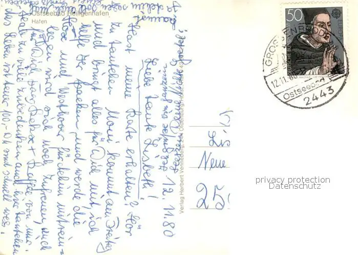 Heiligenhafen_Ostseebad Hafen Anleger Fischkutter Heiligenhafen_Ostseebad postalisch gelaufen 1980 Erhaltung siehe scans [FriedD77] Frierer