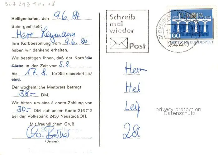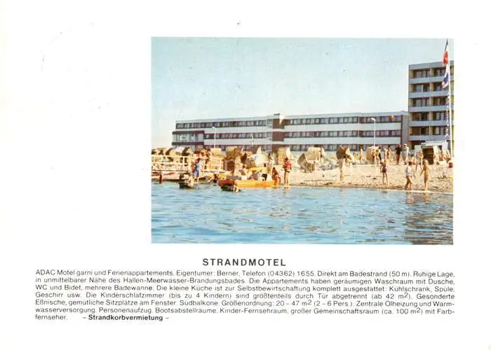Heiligenhafen_Ostseebad Strandmotel ADAC-Motel garni Aussenansicht m. Strand Korbbestellung Heiligenhafen_Ostseebad postalisch gelaufen 1984 Keine Postkarte (siehe scan) Erhaltung siehe scans [LiesaD40] Keine Postkarte (siehe scan) LiesID40
