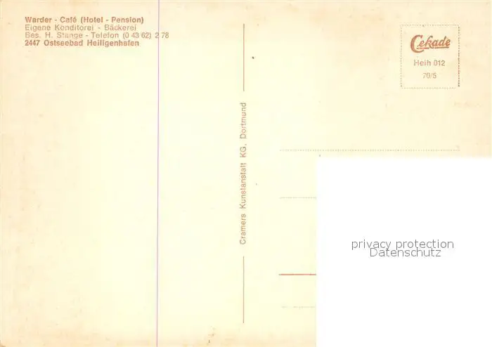 Heiligenhafen_Ostseebad Warder Café Hotel Pension Fremdenzimmer Heiligenhafen_Ostseebad postalisch nicht gelaufen 1970 Erhaltung siehe scans [FriedD77] Frierer