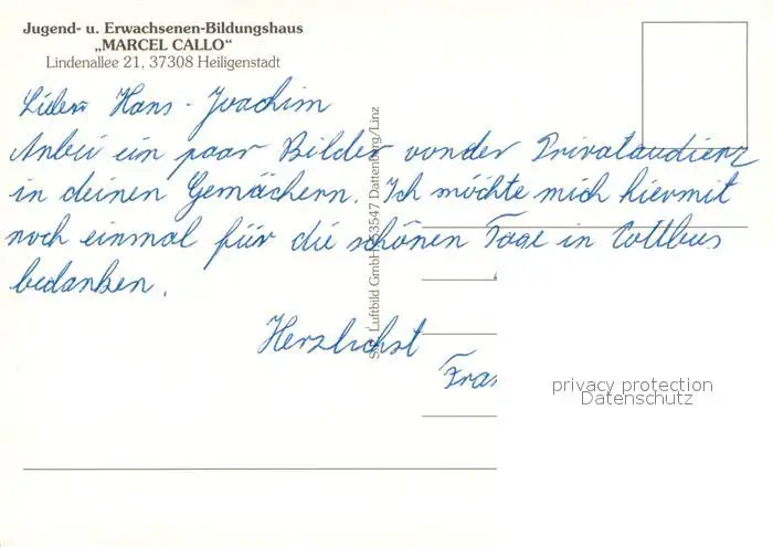 Heiligenstadt_Eichsfeld Marcel Callo Haus Fliegeraufnahme Heiligenstadt_Eichsfeld postalisch nicht gelaufen nach 1965 Erhaltung siehe scans [FriedD77] Frierer