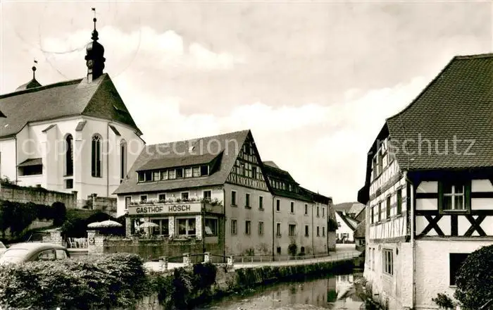 AK / Ansichtskarte Heiligenstadt_Oberfranken Gasthof Hoesch Kirche Partie am Bach Heiligenstadt_Oberfranken