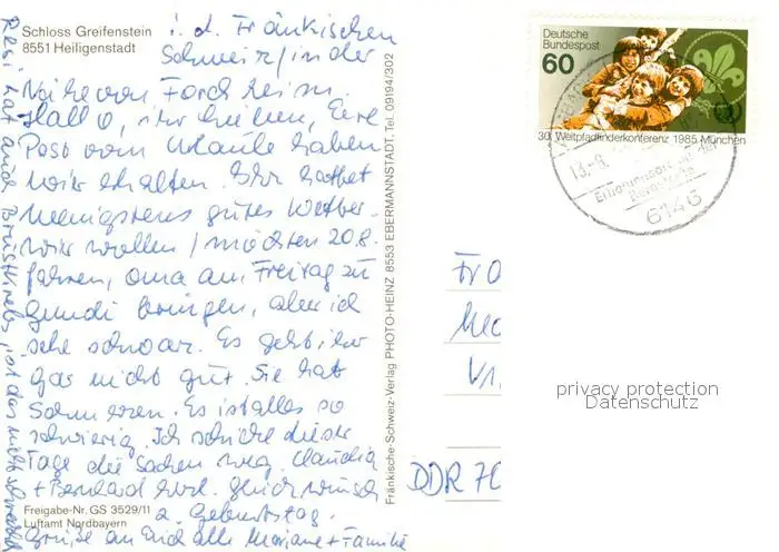 Heiligenstadt_Oberfranken Schloss Greifenstein Fliegeraufnahme Heiligenstadt_Oberfranken postalisch gelaufen nach 1965 Erhaltung siehe scans [WerneD78] WernPID7