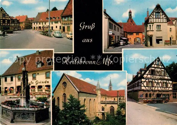 Heilsbronn Kategorie Alte Ansichtskarten Postkarten bx52853 Heilsbronn Altstadt Brunnen Gaststaette Kirche Hotel Fachwerkhaus Torbogen Heilsbronn postalisch nicht gelaufen nach 1965 Erhaltung siehe scans [FriedD77]