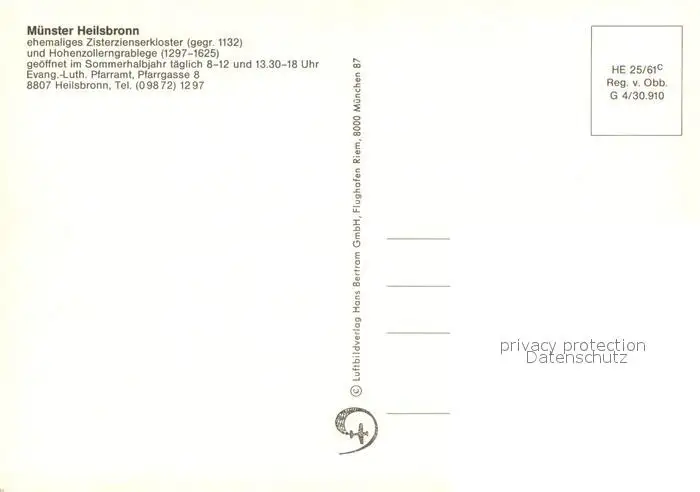 Heilsbronn Muenster Heilsbronn ehem Zisterzienserkloster Fliegeraufnahme Heilsbronn postalisch nicht gelaufen nach 1965 Erhaltung siehe scans [WerneD78] WernPID7