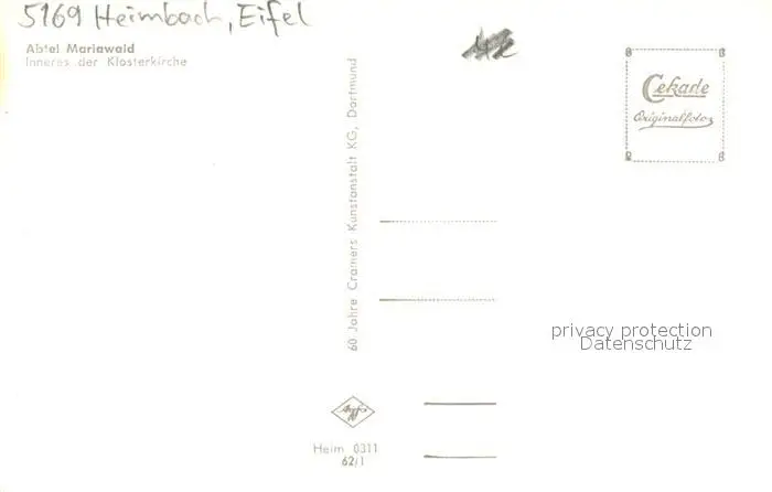 Heimbach_Eifel Abtei Mariawald Inneres der Klosterkirche Heimbach Eifel postalisch nicht gelaufen 1962 Erhaltung siehe scans [FriedD77] Frierer
