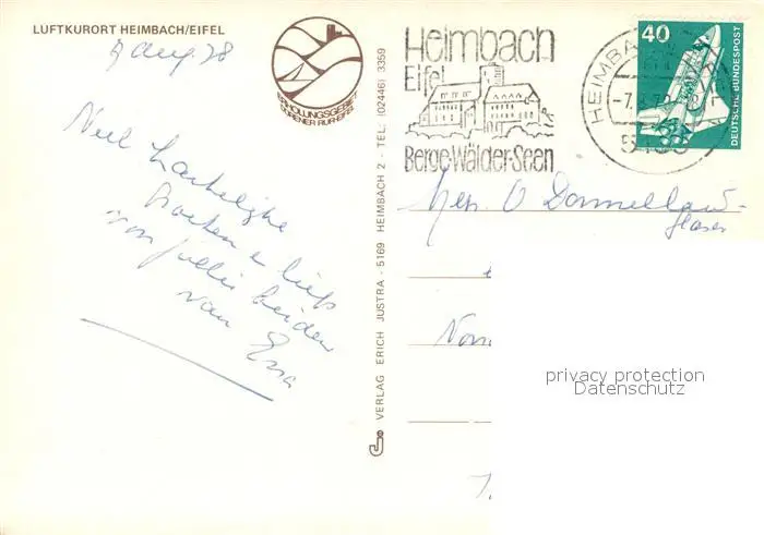Heimbach_Eifel Heimbach Eifel postalisch gelaufen 1978 Erhaltung siehe scans [LiesaD40] LiesID40
