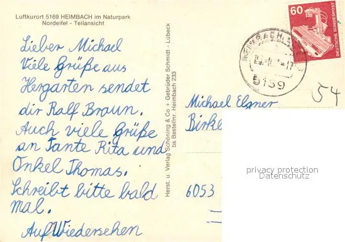 Heimbach Eifel Panorama Heimbach postalisch gelaufen nach 1965 Erhaltung siehe scans [KathaD81] Kathoren