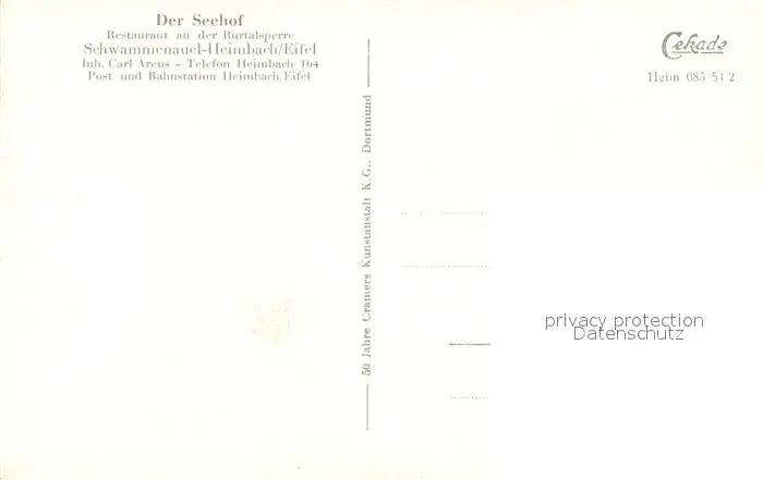 Heimbach Eifel Kategorie Alte Ansichtskarten Postkarten bx54246 Heimbach_Eifel Rurtalsperre Schwammenauel Seehof Heimbach Eifel postalisch nicht gelaufen Erhaltung siehe scans [NatalD47]