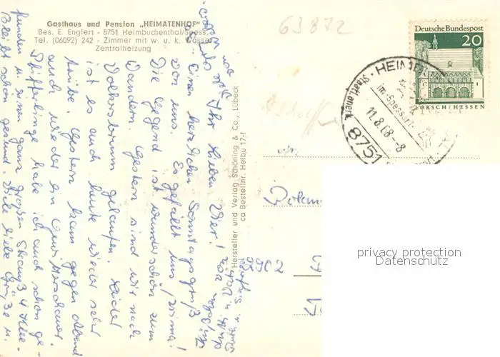 Heimbuchenthal Gasthaus Pension Heimatenhof Gastraum Rotwild Heimbuchenthal postalisch gelaufen 1968 Erhaltung siehe scans [WerneD78] WernPID7