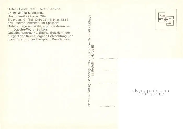 Heimbuchenthal Hotel Restaurant Cafe Pension Zum Wiesengrund Panorama Heimbuchenthal postalisch nicht gelaufen nach 1965 Erhaltung siehe scans [FriedD77] Frierer