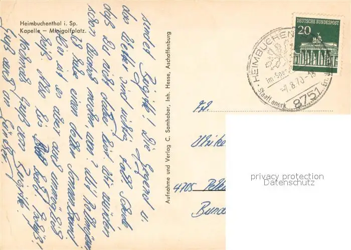 Heimbuchenthal Kapelle Panorama Minigolfplatz Heimbuchenthal postalisch gelaufen 1970 Erhaltung siehe scans [FriedD77] Frierer