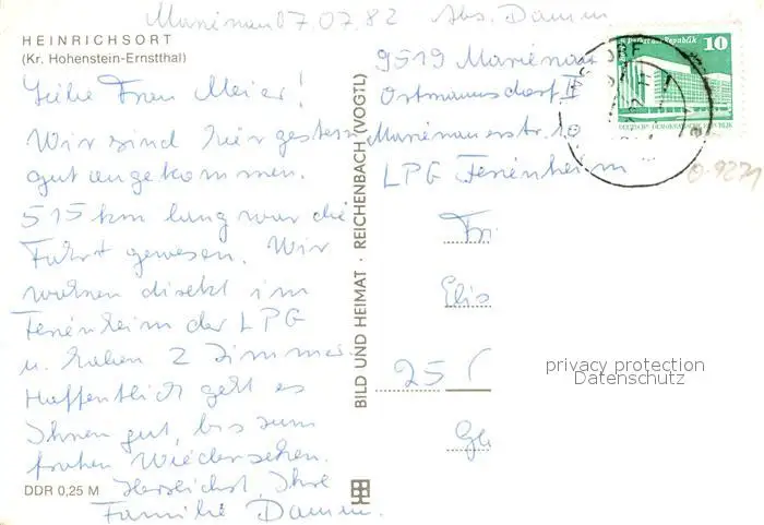 Heinrichsort Ferienheim Voelkerfreundschaft Rat der Gemeinde Pflegeheim Heinrichsort postalisch gelaufen 1982 Erhaltung siehe scans [KathaD81] Kathoren
