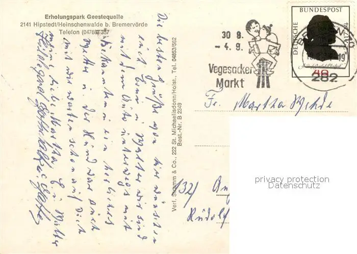 Heinschenwalde Erholungspark Geestequelle Kinderspielplatz Reithalle Heinschenwalde postalisch gelaufen 1971 Erhaltung siehe scans [FriedD77] Frierer