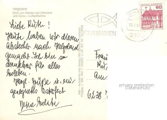 Helgoland Blick von Westen auf Oberland und Duene Fliegeraufnahme Helgoland postalisch gelaufen 1984 Erhaltung siehe scans [FriedD77] Frierer