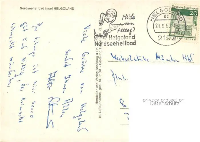Helgoland Fliegeraufnahme Leuchtturm Steilwandkueste Helgoland postalisch gelaufen 1969 Erhaltung siehe scans [KathaD81] Kathoren