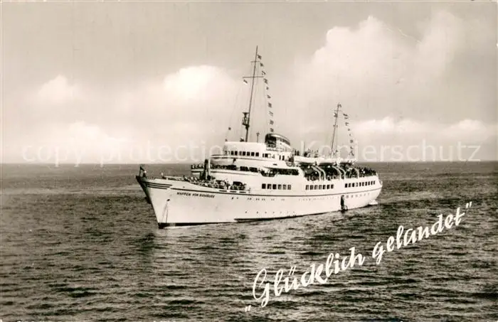 Helgoland Kategorie Alte Ansichtskarten Postkarten bx58585 Helgoland Wappen von Hamburg vor Anker Helgoland postalisch gelaufen 1958 Erhaltung siehe scans [WerneD78]