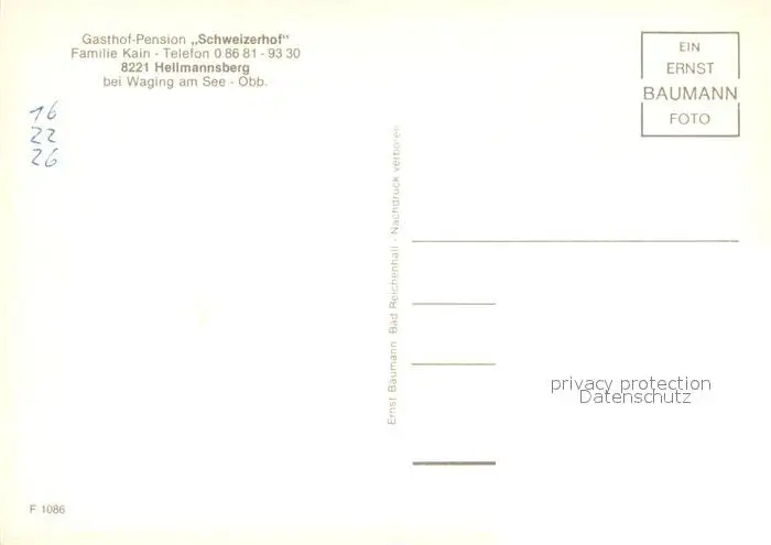 Hellmannsberg_Waging_See Gasthof Pension Schweizerhof Restaurant Swimming Pool Hellmannsberg_Waging_See postalisch nicht gelaufen nach 1965 Erhaltung siehe scans [FriedD77] Frierer