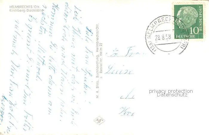 Helmbrechts_Oberfranken Kirchberg Gaststaette Helmbrechts Oberfranken postalisch gelaufen 1958 Erhaltung siehe scans [WerneD78] WernPID7