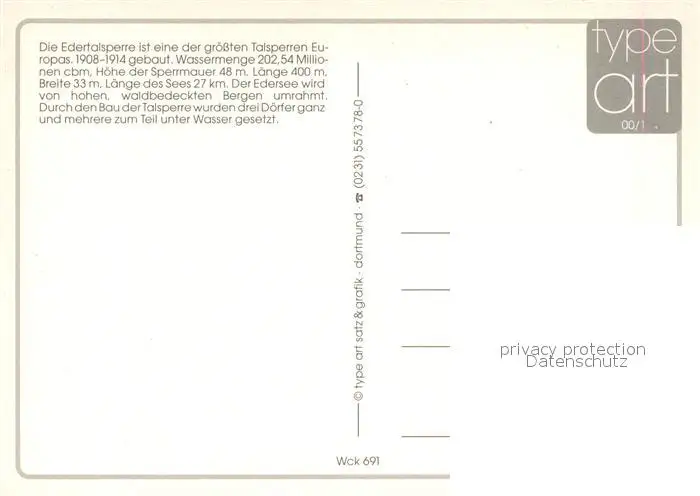 Hemfurth-Edersee Edertalsperre mit Sperrmauer und Edersee Fliegeraufnahme Hemfurth-Edersee postalisch nicht gelaufen nach 1965 Erhaltung siehe scans [FriedD77] Frierer