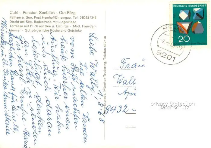 Hemhof_Oberbayern Cafe Pension Seeblick Gut Foerg Gastraum Chiemsee Hemhof Oberbayern postalisch gelaufen 1968 Erhaltung siehe scans [FriedD77] Frierer