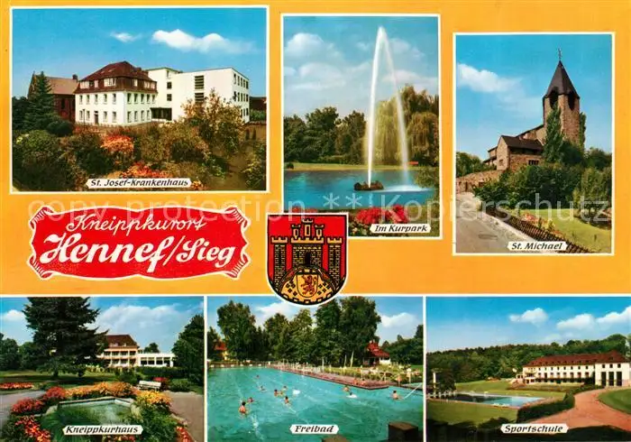 AK / Ansichtskarte Hennef_Sieg St Josefs Krankehaus Kurpark St Michael Kneippkurhaus Freibad Sportschule Hennef Sieg