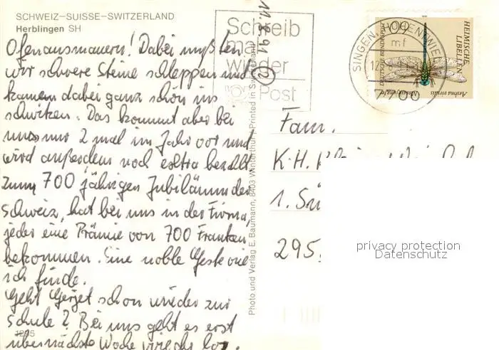 Herblingen Ortsansichten Schloss Einkaufszentrum Herblingen postalisch gelaufen 1991 Erhaltung siehe scans [FriedD77] Frierer