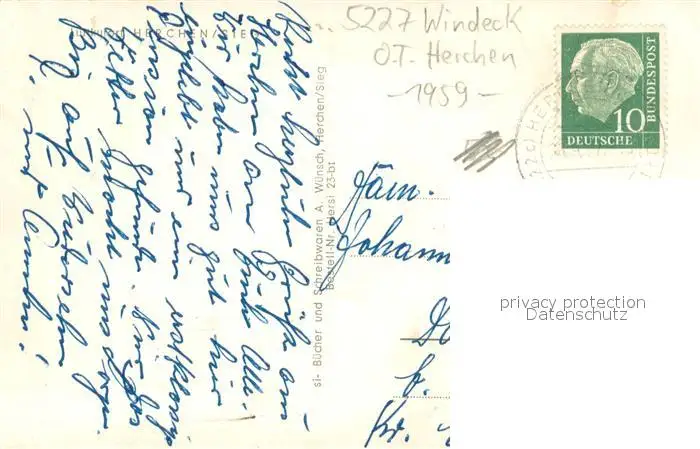 Herchen Ortsansicht mit Kirche Herchen postalisch gelaufen 1959 Erhaltung siehe scans [FriedD77] Frierer