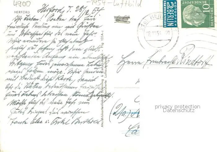 Herford Fliegeraufnahme Herford postalisch gelaufen 1954 Erhaltung siehe scans [WerneD78] WernPID7