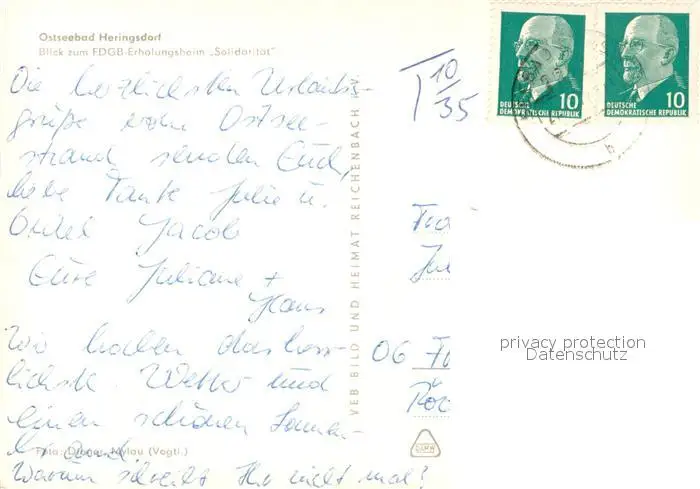 Heringsdorf_Ostseebad_Usedom FDGB Erholungsheim Solidaritaet Heringsdorf_Ostseebad postalisch gelaufen nach 1965 Erhaltung siehe scans [FriedD77] Frierer